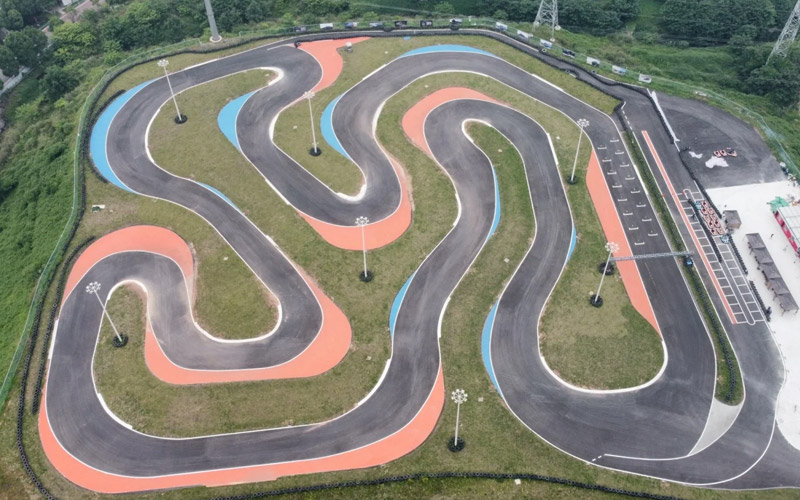 卡丁車賽道理想路面:卡丁車賽道的理想路面通常為瀝青,其具有良好的平整度、抓地力和耐磨性,能為車手提供穩定且高速的行駛體驗。然而,如果是室內賽道且地面基礎為混凝土,賽騎研發的特殊賽道地面涂料則成為了一種理想的替代方案。這種涂料能夠在很大程度上接近瀝青的性能,為車手創造出近似于室外瀝青賽道的駕駛感受。